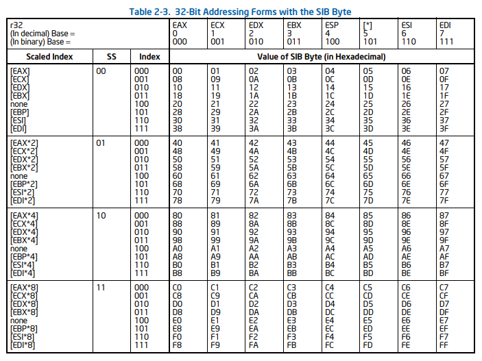 (ModR/M과 마찬가지로 해당 사이트에서 ModR/M표에서 더 내리면 SIB표가 존재한다)